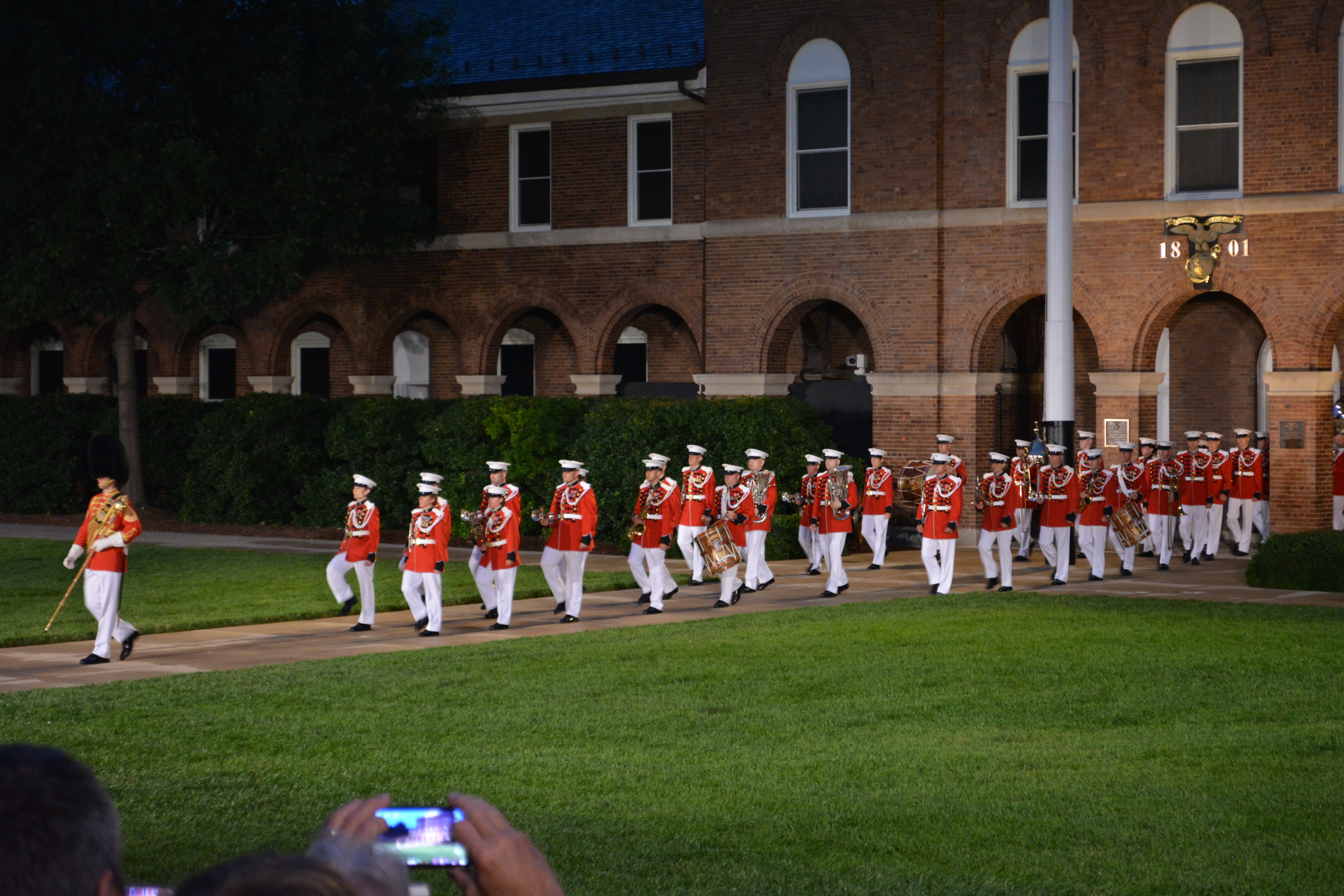 Marine Corps Band forming up on the parade field