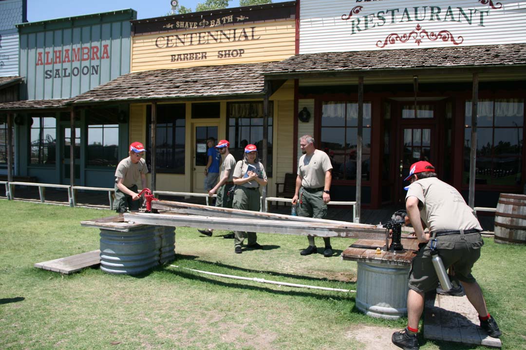 We left Grand Island, Nebraska and traveled over 300 miles to get to Dodge City, Kansas. There we toured the Boot Hill Cemetery and Dodge City Museum having lunch in the period Beatty-Kelley Restaurant. Sarsaparilla seemed to be the drink of choice by the crew. The Boot Hill Cemetery was next to the street scence and the Crew worked their way through all the museum displays in each of the Dodge City Street buildings. Later we set up at the concert venue two blocks away then came back to watch a shoot out on the Dodge City Street. Then we went back to the concert venue and played for people on horseback.