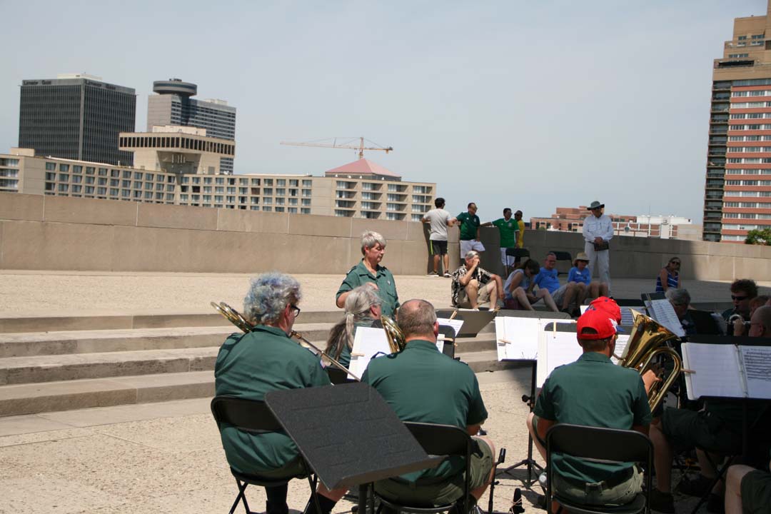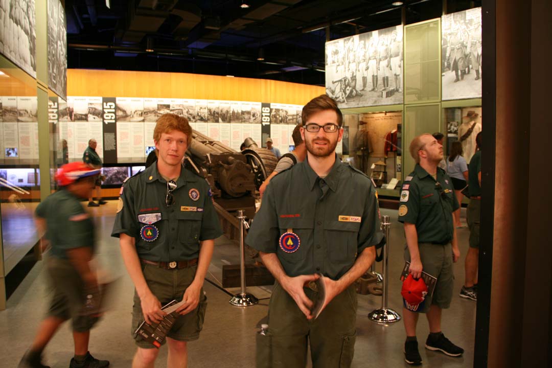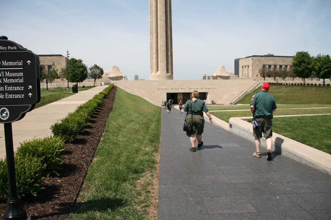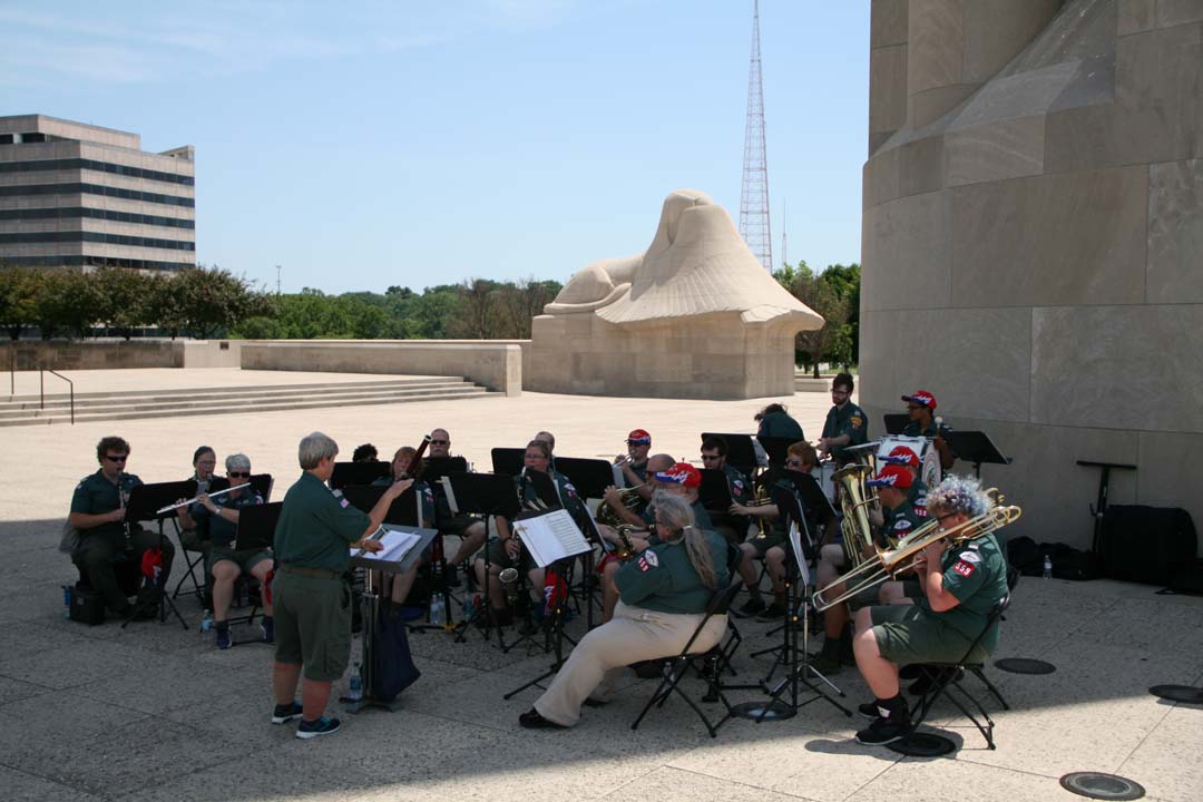 After we left the hotel in Dodge City we traveled 335 miles to Kansas City, Missouri to the National World War I Museum and Memorial. Once there we started out by playing a concert outside in 100 degree weather. It was HOT! Ray Oster's son met us there and we got to meet a legacy descendant of the early years of the Scout Band. Later we toured the WWI Museum which was full of guns, howitzers, uniforms, and tanks from that era and the war. We ended the evening at a local restaurant known for it's Kansas City style BBQ.